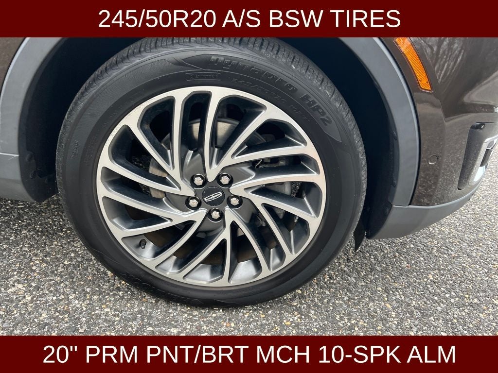 2020 Lincoln Nautilus Reserve in Brown vehicle highlights include.., CLEAN CAR FAX, SUPER LOW MILES, AWD, PANORAMIC VISTA SUNROOF, BLIS W/CROSS-PATH PROTECTION, 360* CAMERA, ADAPTIVE CRUISE CONTROL W/LANE KEEPING, PRE COLLISION ASSIST W/AEB, LANE KEEPING, DUAL AC, INTELLIGENT ACCESS W/PUSH BUTTON START, REMOTE KEYLESS ENTRY, ILLUMINATED ENTRY, AUTOMATIC, PREMIUM LEATHER HEATED STEERING WHEEL, POWERED TELESCOPING STEERING WHEEL, AMBIENT LIGHTING, CONFIGURABLE DAY TIME RUNNING LAMPS, RAIN SENSING WIPERS, WIRELESS CHARGING PAD, HOMELINK, REVEL PREMIUM AUDIO, LINCOLN CONNECT, SYNC3, LED FOG LIGHTS, MIRRORS/HEATED/AUTOFOLD/SIGNAL/DRIVER MEMORY/AUTO DIMMING/APPROACH LIGHTS, QUALITY, PREMIUM LEATHER TRIMMED SEATING, 22WAY POWERED MULTICONTOUR SEATING, MEMORY DRIVER SEAT, POWER SEATS, SPORT SEATS, HEATED & COOLED FRONT SEATS, VENTILATED SEATS, HEATED 2ND ROW, ADVANCETRAC* W/RSC, LED AUTOMATIC HIGH/LOW BEAMS, LED TAIL LIGHTS, DUAL EXHAUST w/CHROME TIPS, T.P.M.S., SECURICODE*, ROOF RACKS, HANDS FREE LIFTGATE, SOS POST CRASH ALERT, UNIVERSAL GARAGE REMOTE, REAR PRIVACY GLASS, 2.7L V6 Twin Turbocharged, 8-Speed Automatic, 13 Speakers, 3.80 Axle Ratio, 360 Degree Camera, ABS brakes, Adaptive Cruise Control, Adaptive suspension, Air Conditioning, Alloy wheels, AM/FM radio: SiriusXM, AppLink/Apple CarPlay and Android Auto, Auto High-beam Headlights, Auto tilt-away steering wheel, Auto-dimming door mirrors, Auto-dimming Rear-View mirror, Automatic temperature control, Brake assist, CD player, Compass, Delay-off headlights, Distance Alert & Distance Indication, Electronic Stability Control, Emergency communication system: 911 Assist, Enhanced Active Park Assist, Evasive Steering Assist, Exterior Parking Camera Rear, Four wheel independent suspension, Front anti-roll bar, Front Bucket Seats, Front Center Armrest w/Storage, Front dual zone A/C, Front fog lights, Front Sensing, Fully automatic headlights, Garage door transmitter: HomeLink, Genuine wood console insert, Genuine wood door panel insert, Heated door mirrors, Heated front seats, Heated rear seats, Heated steering wheel, Illuminated entry, Leather steering wheel, Lincoln Co-Pilot360 Plus Package, Low tire pressure warning, Memory seat, Navigation System, Outside temperature display, Overhead console, Panic alarm, Passenger vanity mirror, Power door mirrors, Power driver seat, Power Liftgate, Power moonroof: Panoramic Vista Roof, Power passenger seat, Prem Lthr-Trimmed Heated/Cooled Bucket Seats, Radio data system, Radio: Revel AM/FM/HD Audio System w/Single-CD, Rain sensing wipers, Rear anti-roll bar, Rear reading lights, Rear seat center armrest, Rear window defroster, Rear window wiper, Satin Roof Rack Side Rails w/o Crossbars, Security system, Speed control, Speed-sensing steering, Speed-Sensitive Wipers, Split folding rear seat, Spoiler, Steering wheel memory, Steering wheel mounted A/C controls, Steering wheel mounted audio controls, SYNC 3 Communications & Entertainment System, Tachometer, Traction control, Turn signal indicator mirrors, Ultra Comfort (22-Way) Seats w/Active Motion, Variably intermittent wipers, Ventilated front seats, Voice-Activated Touchscreen Navigation System, Wheels: 20 Prem Painted Std Bright Machined Alum.