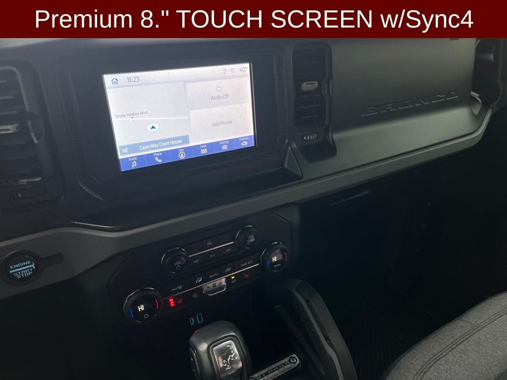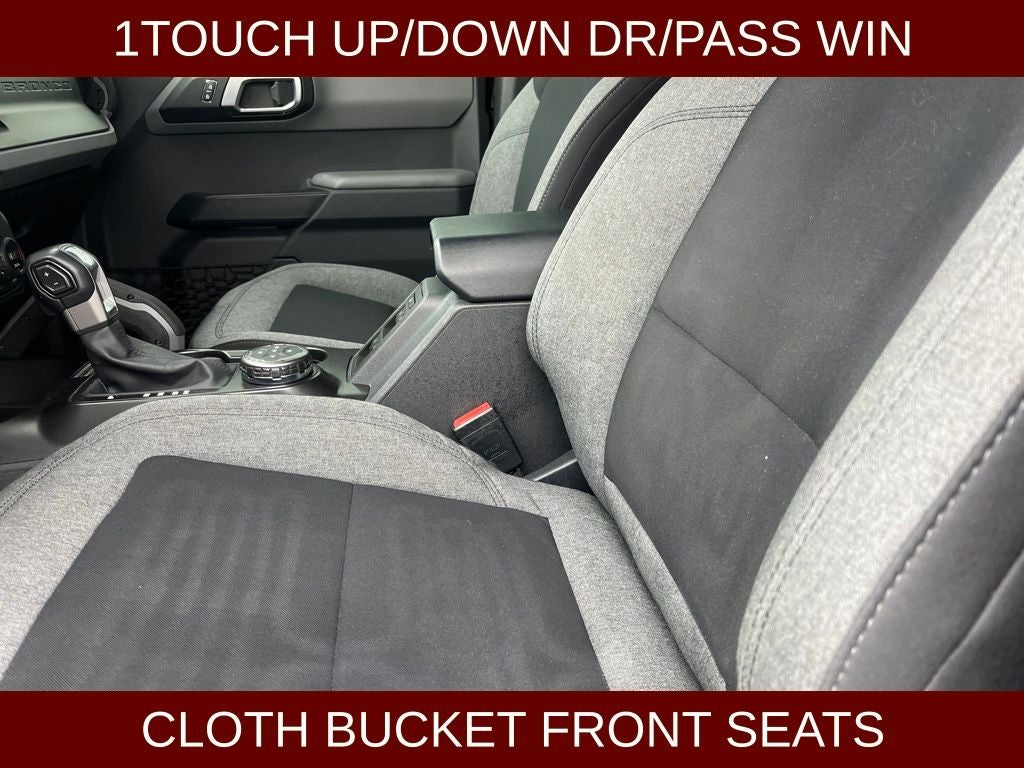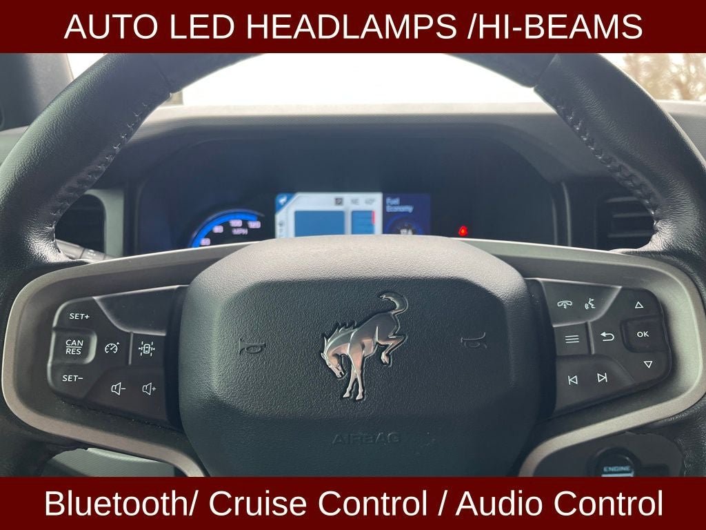 2021 Ford Bronco Big Bend in Antimatter Blue Metallic vehicle highlights include.., CERTIFIED READY, 1 OWNER, LOW MILES, 4WD, SOFT TOP, VOICE ACTIVATED NAVIGATION w/TOUCH SCREEN, CONNECTED NAV, FORD CO-PILOT 360*, BACK UP CAM / REAR VIEW CAMERA, SMART CRUISE CONTROL, PRE COLLISION ASSIST W/AEB, DUAL AC, REMOTE START, PUSH BUTTON IGNITION, INTELLIGENT ACCESS W/PUSH BUTTON START, REMOTE KEYLESS ENTRY, ILLUMINATED ENTRY, AUTOMATIC, SASQUATCH PACKAGE, TERRAIN MANAGEMNET W/G.O.A.T., FRONT & REAR USB, USB(A) & USB(C), 4G WIFI MODEM, WIFI HOT SPOT, HD RADIO, Bluetooth®, AUXILLARY INPUT, MEDIA HUB, 8. PREMIUM TOUCH SCREEN, FORDPASS CONNECT, SYNC4 w/ENHANCED VOICE RECOGNITION, FENDER TIE DOWN HOOK(S), 2 FRONT/1 REAR TOW HOOKS, POWDER COATED TUBE STEPS, 12V DC POWER POINTS, AUXILLARY POWER OUTLET(S), POWERED & HEATED MANUAL FOLD MIRRORS, QUALITY, UNIQUE CLOTH BUCKET SEATS, SPORT SEATS, HEATED SEATS, REAR CHILD SAFETY LOCKS, LATCH* CHILD SAFETY SYSTEM, ADVANCETRAC* W/RSC, LED AUTO HEADLIGHTS, LED TAIL LIGHTS, TOOL KIT TOP REMOVAL, CAPLESS FUEL EZ FILL, TRACTION CONTROL, T.P.M.S., LOCKING GLOVE BOX, SECURICODE*, CARPET FLOORING- ALL ROWS, FLOOR MATS 1st & 2nd ROW, HILL START ASSIST, 2.7L EcoBoost V6, 10-Speed Automatic, 4.7 Axle Ratio, 6 Speakers, ABS brakes, Air Conditioning, AM/FM radio: SiriusXM with 360L, Auto High-beam Headlights, Brake assist, Compass, Delay-off headlights, Driver vanity mirror, Electronic Stability Control, Emergency communication system: 911 Assist, Exterior Parking Camera Rear, Front anti-roll bar, Front Bucket Seats, Front Center Armrest, Front reading lights, Front wheel independent suspension, Fully automatic headlights, Heated door mirrors, Heated front seats, Illuminated entry, Integrated roll-over protection, Low tire pressure warning, Navigation system: Connected Navigation, Occupant sensing airbag, Outside temperature display, Overhead console, Passenger vanity mirror, Powder Coated Tube Step, Power door mirrors, Radio data system, Remote keyless entry, Remote Start System, Security system, SiriusXM Radio w/360L, Speed control, Split folding rear seat, Steering wheel mounted audio controls, SYNC 4, Tachometer, Towing Capability, Trip computer, Variably intermittent wipers, Wheels: 17 Black High Gloss-Painted Aluminum.