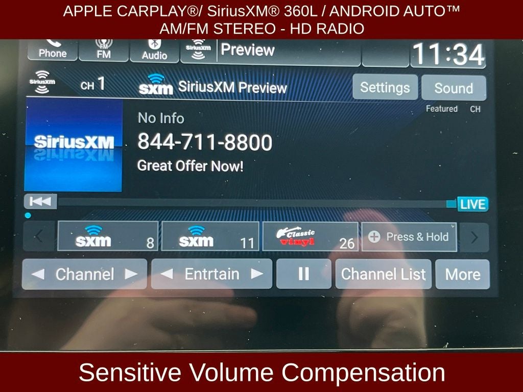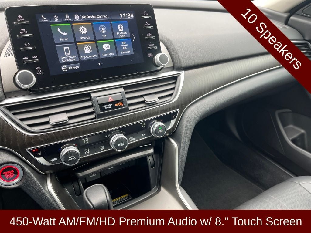 - Radio: 450-Watt AM/FM/HD Premium Audio System -inc: 10 speakers including subwoofer, 8" display audio w/high-resolution electrostatic touch-screen, knobs and hard keys for primary controls and customizable feature settings, Bluetooth HandsFreeLink, Bluetooth streaming audio, SMS text message function, Radio Data System (RDS), Speed-Sensitive Volume Compensation (SVC), HondaLink, Apple CarPlay integration, Android Auto integration, 1 2.5-amp USB smartphone/audio interface port in front console, 1 2.5-amp USB charging port in front console, 2 2nd-row 2.5-amp USB charging ports, illuminated steering wheel-mounted controls, body-colored fin-type roof-mounted antenna and SiriusXM radio, SiriusXM requires a subscription after any trial period, If you decide to continue your SiriusXM service at the end of your trial subscription, the plan you choose will automatically renew and bill at then-current rates until you call SiriusXM at 1-866-635-2349 to cancel, See our Customer Agreement for complete terms at www.siriusxm.com, Fees and programming subject to change, Available in the 48 contiguous United States and D.C, SiriusXM and all related marks and logos are trademarks of SiriusXM Radio Inc