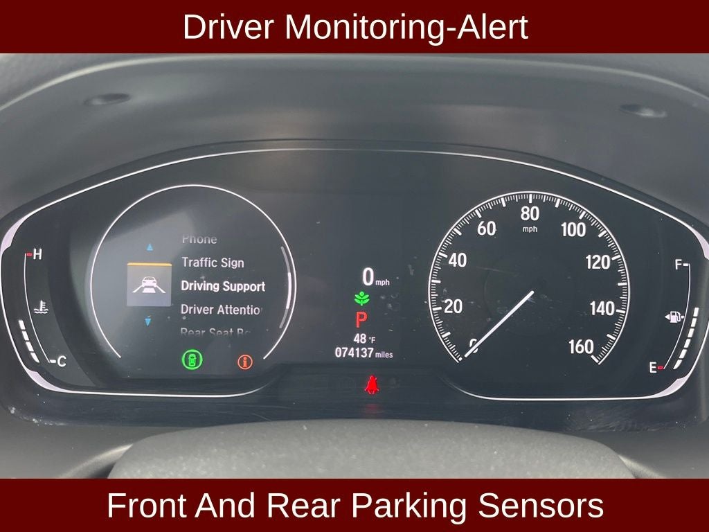 FWD, BLIS W/CROSS-PATH PROTECTION, BACK UP CAM / REAR VIEW CAMERA, ADAPTIVE CRUISE CONTROL, COLLISION MITIGATION-FRONT, FORWARD COLLISION DETECTION, DRIVER AWARE ALERT, REMOTE KEYLESS ENTRY, ILLUMINATED ENTRY, AUTOMATIC, WOOD GRAIN ACCENTS, SECURITY APPROACH LAMPS, DAY TIME RUNNING LAMPS, ELECTRIC POWERED ASSIST STEERING, HOMELINK, POWER AMPLIFIED SYSTEM, PREMIUM FOG LIGHTS, BATTERY w/RUN DOWN PROTECTION, 12V DC POWER POINTS, QUALITY, POWER SEATS, SPORT SEATS, REAR CHILD SAFETY LOCKS, LED TAIL LIGHTS, GAS CHARGED SHOCKS, T.P.M.S., LOCKING GLOVE BOX, FADE TO OFF INTERIOR LIGHT, CARGO MANAGEMENT SYSTEM, CARGO LIGHTING, CARPET FLOORING- ALL ROWS, SOLAR /DARK TINTED GLASS, IMMOBILIZER, 1.5T I4 DOHC 16V Turbocharged VTEC, CVT, 10 Speakers, 17 Machine-Finished Alloy Wheels, ABS brakes, Adaptive Cruise Control: Adaptive Cruise Control (ACC) with Low-Speed Follow, Alloy wheels, AM/FM radio: SiriusXM, Apple CarPlay/Android Auto, Auto High-beam Headlights, Auto-dimming Rear-View mirror, Automatic temperature control, Blind Spot Information (BSI) System warning, Brake assist, Delay-off headlights, Driver vanity mirror, Electronic Stability Control, Emergency communication system: HondaLink, Exterior Parking Camera Rear, Forward collision: Collision Mitigation Braking System (CMBS) + FCW mitigation, Four wheel independent suspension, Front anti-roll bar, Front Center Armrest, Front dual zone A/C, Front fog lights, Front reading lights, Fully automatic headlights, Garage door transmitter: HomeLink, Heated door mirrors, Heated Front Bucket Seats, Illuminated entry, Lane Departure Warning System, Leather Shift Knob, Leather steering wheel, Leather-Trimmed Seats, Low tire pressure warning, Memory seat, Passenger vanity mirror, Power door mirrors, Power driver seat, Power moonroof, Power passenger seat, Radio data system, Radio: 450-Watt AM/FM/HD Premium Audio System, Rear anti-roll bar, Rear seat center armrest, Rear window defroster, Remote keyless entry, Security system, Speed-sensing steering, Speed-Sensitive Wipers, Split folding rear seat, Steering wheel mounted audio controls, Tachometer, Traction control, Trip computer, Turn signal indicator mirrors, Variably intermittent wipers.