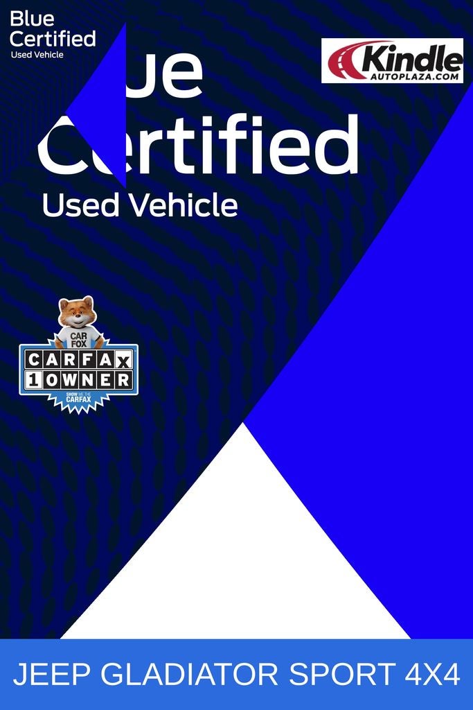 2022 Jeep Gladiator Sport in Granite Crystal Metallic Clearcoat vehicle highlights include.., FORD BLUE CPO, 1 OWNER, CLEAN CAR FAX, LOW MILES, 4WD, AUTOMATIC, QUALITY, 3.6L V6 24V VVT, 8-Speed Automatic, 240 Amp Alternator, 4.10 Rear Axle Ratio, Anti-Spin Differential Rear Axle, Black 3-Piece Hard Top, Bridgestone Brand Tires, Class IV Receiver Hitch, Convenience Group, Dana M210 Wide Front Axle, Dana M220 Wide Rear Axle, Heavy-Duty Engine Cooling, Max Tow Package w/4.10 Axle Ratio, Popular Equipment Package, Trailer Hitch Zoom, Trailer Tow Package, Universal Garage Door Opener.