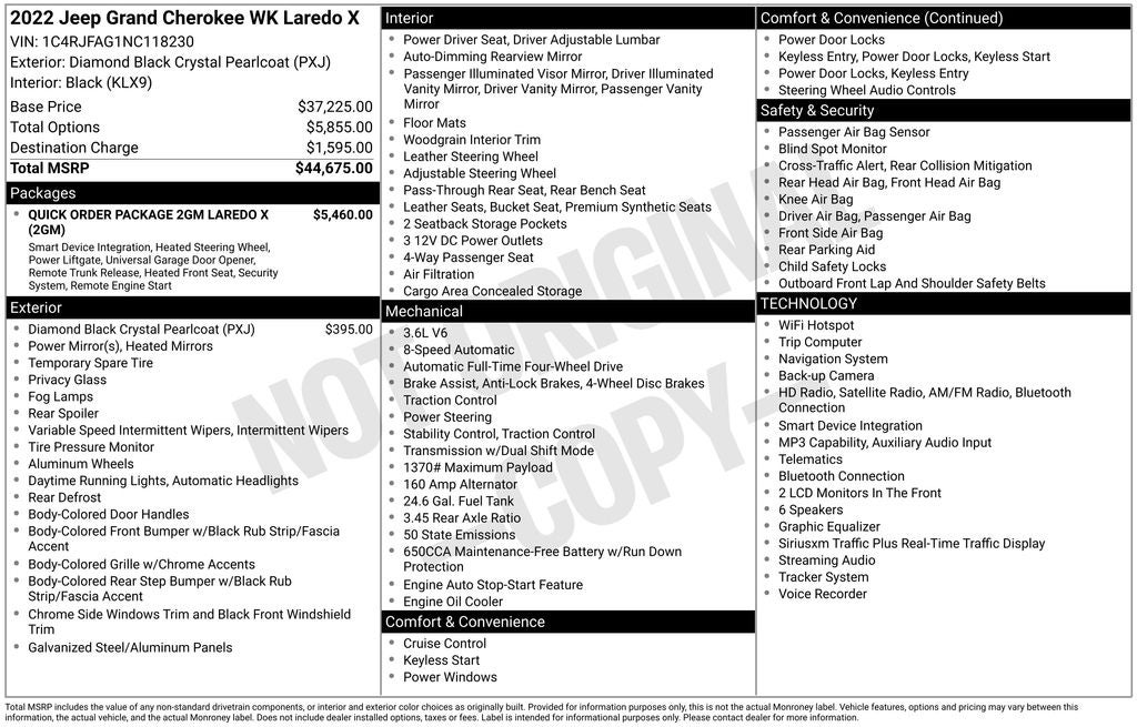 2022 Jeep Grand Cherokee WK Laredo X in Diamond Black Crystal Pearlcoat vehicle highlights include.., FORD BLUE CPO, AUTOMATIC, QUALITY.