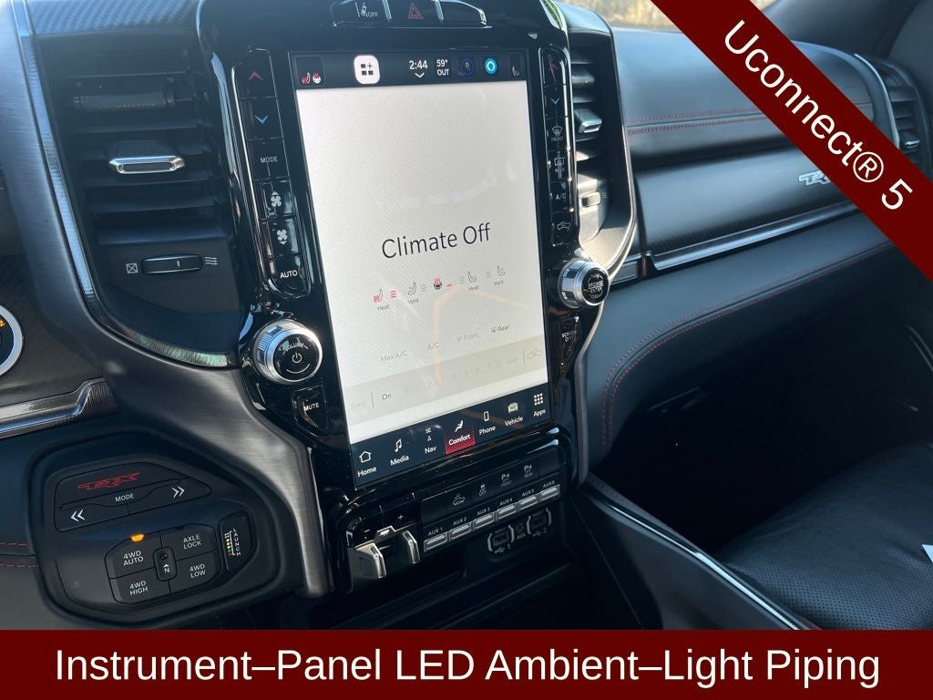 2022 Ram 1500 TRX in Bright White Clearcoat vehicle highlights include.., CERTIFIED READY, CLEAN CAR FAX, ACCIDENT FREE, 4WD, DUAL PANE PANORAMIC SUNROOF, BLIS W/CROSS-PATH PROTECTION, PARKSENSE FRONT & REAR PARK ASSIST, PARKVIEW BACK UP CAMERA, DIGITAL REAR-VIEW MIRROR, FULL SPEED FORWARD COLLISION BRAKING, PEDESTRIAN WARNING, ADVANCED BRAKE ASSIST, H.U.D. HEADS UP DISPLAY, LANE KEEPING, REMOTE START, INTELLIGENT ACCESS W/PUSH BUTTON START, REMOTE KEYLESS ENTRY, ILLUMINATED ENTRY, AUTOMATIC, FLAT BOTTOM SPORT STEERING WHEEL, HEATED STEERING WHEEL, POWERED ADJUSTABLE PEDALS w/MEMORY, RAIN SENSING WIPERS, PADDLE SHIFTER, CONFIGURABLE DRIVE MODES, DUAL WIRELESS CHARGING STATION, 5G WIFI MODEM, WIFI HOT SPOT, HD RADIO, Bluetooth®, AUXILLARY INPUT, MEDIA HUB, 12. PREMIUM TOUCH SCREEN, HARMAN KARDAN PREMIUM AUDIO, CARGO TIE DOWN HOOKS BY MOPAR, DEPLOYABLE BED STEP BY MOPAR, LED AMBIENT INTERIOR LIGHTING, CLASS lV TRAILER HITCH, INTEGRATED TRAILER BRAKE, POWER SLIDING REAR WINDOW, SPRAY-IN BEDLINER BY MOPAR*, LED BED LIGHTING, POWER TAILGATE RELEASE, QUALITY, PREMIUM LEATHER TRIMMED SEATING, MEMORY DRIVER SEAT, POWER SEATS, SPORT SEATS, HEATED & COOLED FRONT SEATS, VENTILATED SEATS, HEATED 2ND ROW, VENTILATED REAR SEATS, CLEAN AIR SYSTEM, FRONT & REAR RUBBER MATS BY MOPAR, *PERFORMANCE BRAKES, 6.2L Supercharged HEMI V8 SRT, 8-Speed Automatic, #2 Seat Foam Cushion, 10 Speakers, 2-Door Passive Entry, Front Door Locks, 3.55 Rear Axle Ratio, 4 Way Front Headrests, 4-Wheel Disc Brakes, ABS brakes, Adaptive Cruise Control w/Stop & Go, Adaptive suspension, Advanced Safety Group, Alloy wheels, AM/FM radio: SiriusXM with 360L, Apple CarPlay/Android Auto, Auto High-beam Headlights, Auto-dimming door mirrors, Auto-dimming Rear-View mirror, Automatic temperature control, Bed Utility Group, Black Exterior Mirrors, Blind Spot & Cross Path Detection, Body Color Door Handles, Brake assist, Bucket Seats, Center Console Parts Module, Cloth/Vinyl Bucket Seats, Compass, Delay-off headlights, Digital Rearview Mirror, Dome Dual LED Reading Lamp, Driver door bin, Driver Seat Memory, Driver/Passenger Wrapped Assist Handles, Electronic Stability Control, Exterior Mirrors Courtesy Lamps, Exterior Mirrors w/Heating Element, Exterior Mirrors w/Memory, Exterior Mirrors w/Supplemental Signals, Front anti-roll bar, Front Bucket Seats, Front Center Armrest w/Storage, Front Door Accent Lighting, Front dual zone A/C, Front fog lights, Front License Plate Bracket, Front reading lights, Front Seat Back Map Pockets, Front wheel independent suspension, Full Length Premium Upgraded Floor Console, Fully automatic headlights, harman/kardon 19 Speaker Premium Sound, Heads-Up Display, Heated door mirrors, Heated Front Seats, Heated Second Row Seats, Heated Steering Wheel, Illuminated entry, IP LED Ambient Light Pipe, Lane Keep Assist, Leather Shift Knob, Leather steering wheel, Leather Trimmed Bucket Seats, Leather/Carbon Flat-Bottom Steering Wheel, Leather/Suede Flat-Bottom Steering Wheel, LED CHMSL Lamp, Low tire pressure warning, Luxury Front Door Trim Panel, Manufacturer's Statement of Origin, MOPAR 4 Adjustable Cargo Tie-Down Hooks, MOPAR Bright Pedal Kit, MOPAR Deployable Bed Step, MOPAR Spray In Bedliner, Outside temperature display, Overhead console, Panic alarm, ParkSense Front/Rear Park Assist w/Stop, ParkView Rear Back-Up Camera, Passenger vanity mirror, Pedestrian Emergency Braking, Pick-Up Box Lighting, Power 4-Way Driver Lumbar Adjust, Power 4-Way Passenger Lumbar Adjust, Power 8-Way Driver & Passenger Seats, Power Adjustable Pedals w/Memory, Power door mirrors, Power-Folding Mirrors, Premium Wrapped IP Bezel, Radio data system, Radio: Uconnect 5 Nav w/12.0 Display, Radio/Driver Seat/Mirrors/Pedals Memory, Rain Sensitive Windshield Wipers, Real Carbon Fiber Interior Accents, Rear 60/40 Folding Seat, Rear 60/40 Folding Split Recline Seat, Rear Door Accent Lighting, Rear seat center armrest, Rear step bumper, Rear Underseat Compartment Storage, Rear Window Defro