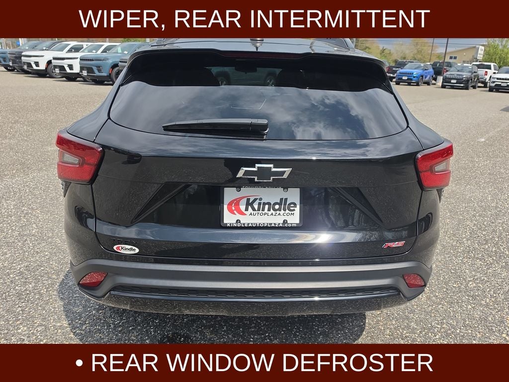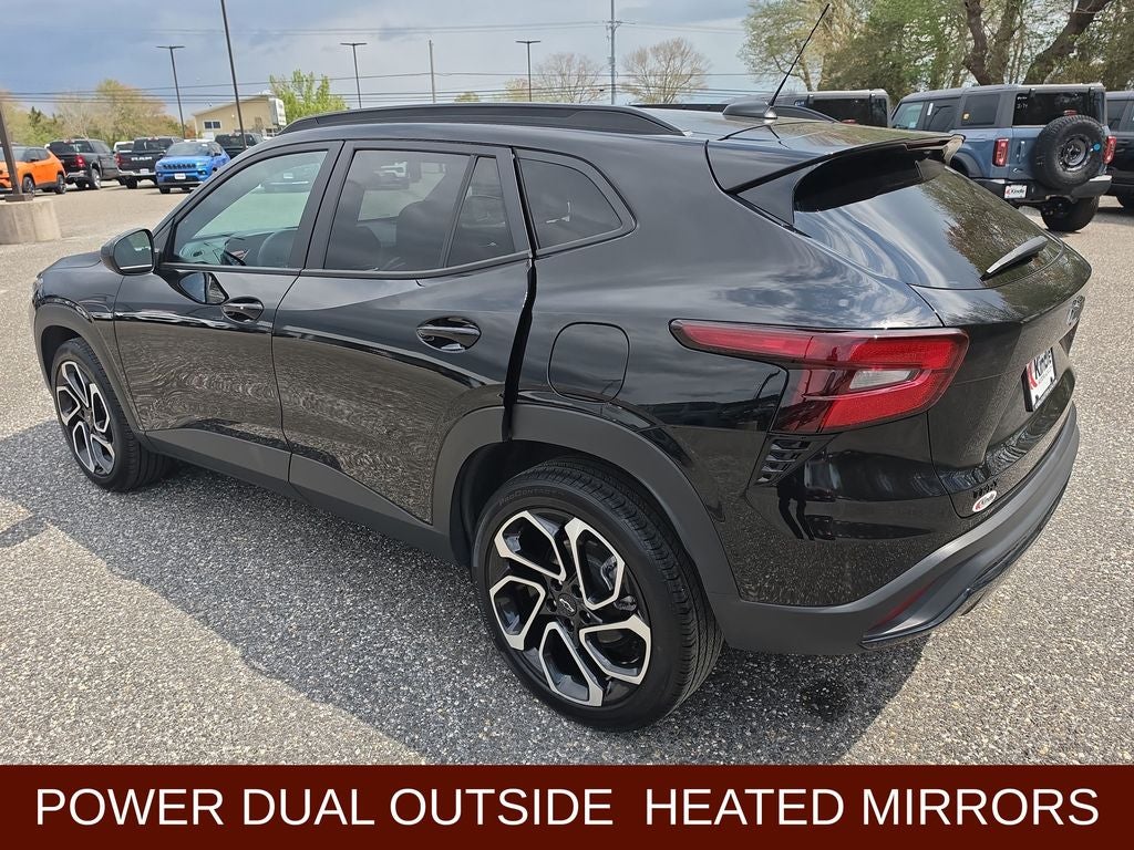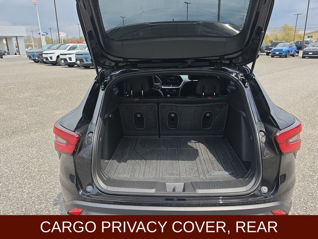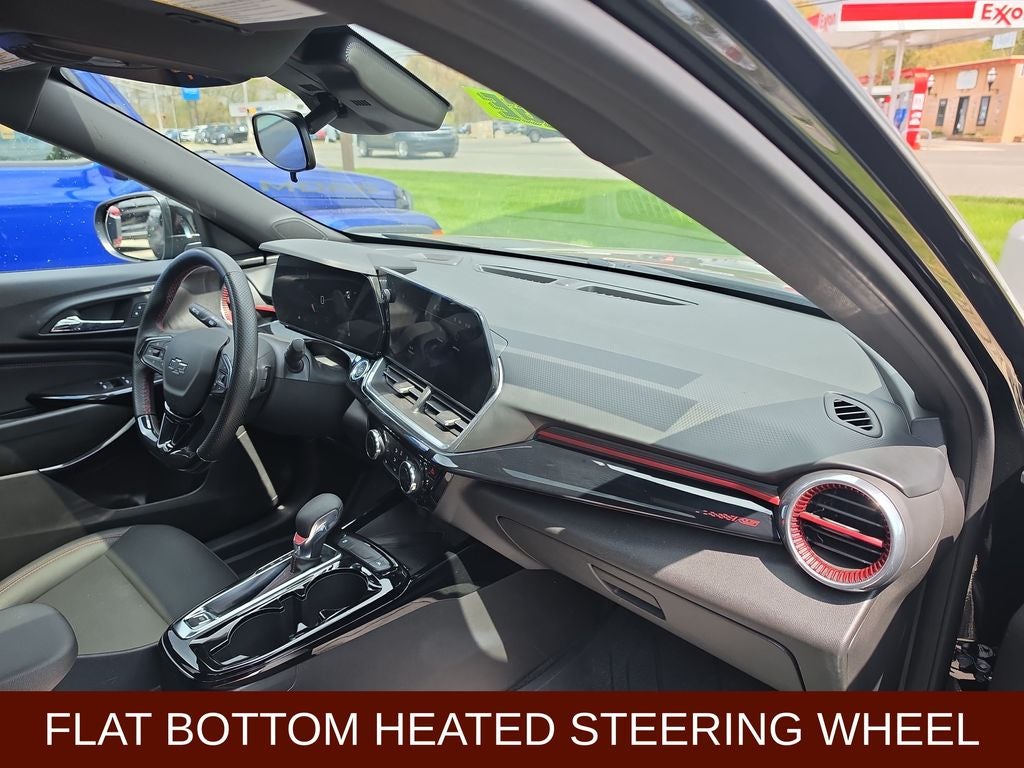 2024 Chevrolet Trax 2RS in Mosaic Black Metallic vehicle highlights include.., FORD BLUE CPO, LOW MILES, FWD, BLIS W/CROSS-PATH PROTECTION, HD REAR VIEW CAMERA, PEDESTRIAN WARNING, ADVANCED BRAKE ASSIST, ADAPTIVE CRUISE CONTROL, FORWARD COLLISION DETECTION, FOLLOWING DISTANCE MONITOR, LANE KEEPING, EXPRESS OPEN, REMOTE START, AUTOMATIC, WIRELESS CARPLAY, FLAT BOTTOM SPORT STEERING WHEEL, AUTOMATIC EMERGENCY BRAKING, HEATED STEERING WHEEL, LED DAY TIME RUNNING LAMPS, ELECTRIC POWERED ASSIST STEERING, REAR SPOILER, ACTIVE NOISE CONTROL, WIRELESS CHARGING PAD, SIRIUS XM*, ON-STAR*, WIFI HOT SPOT, Bluetooth®, INFOTAINMENT VOICE SYSTEM VOICE COMMAND, POWERED ADJUSTABLE HEATED MIRRORS, QUALITY, SPORT SEATS, HEATED SEATS, LED AUTO HEADLIGHTS, LED AUTOMATIC HIGH/LOW BEAMS, STABILI-TRAK, T.P.M.S., CARGO FLOOR MAT, CARGO SHADE, ALL WEATHER FLOOR LINERS, SOLAR /DARK TINTED GLASS, THEFT DETERRENT, 11. PREMIUM TOUCHSCREEN DISPLAY, 1.2L Ecotec Turbo DOHC DI w/VVT, 6-Speed Automatic, 2-Way Adjustable Front Head Restraints, 3.50 Final Drive Axle Ratio, 4-Way Manual Front Passenger Seat Adjuster, 6-Speaker Audio System Feature, 6-Way Manual Driver Seat Adjuster, ABS brakes, Adaptive Cruise Control, Air Conditioning, Alloy wheels, AM/FM radio: SiriusXM, Auto High-beam Headlights, Automatic temperature control, Bumpers: body-color, Compass, Delay-off headlights, Driver Confidence Package, Driver vanity mirror, Dual front impact airbags, Dual front side impact airbags, Electronic Stability Control, Emergency communication system: OnStar and Chevrolet connected services capable, Evotex Seat Trim, Exterior Parking Camera Rear, Front & Rear All-Weather Floor Liners (LPO), Front anti-roll bar, Front Bucket Seats, Front Center Armrest, Front reading lights, Front wheel independent suspension, Fully automatic headlights, Heated door mirrors, Heated Driver & Front Passenger Seats, Heated steering wheel, Illuminated entry, Jet Black Cargo Liner (LPO), Lane Change Alert w/Side Blind Zone Alert, Low tire pressure warning, Occupant sensing airbag, Outside temperature display, Overhead airbag, Overhead console, Panic alarm, Passenger vanity mirror, Power door mirrors, Power Sliding Glass Sunroof w/Manual Shade, Power steering, Power windows, Premium audio system: Chevrolet Infotainment 3, Radio data system, Rear Cross-Traffic Alert, Rear Park Assist, Rear window defroster, Rear window wiper, Remote keyless entry, Security system, Speed control, Split folding rear seat, Spoiler, Sport steering wheel, Steering wheel mounted audio controls, Sunroof Package, Tachometer, Traction control, Variably intermittent wipers, Wheels: 19 Black-Painted Machined Aluminum, Wireless Charging.